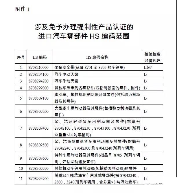 關(guān)于對免予辦理強制性產(chǎn)品認(rèn)證的進口汽車零部件試點實施“先聲明后驗證”便利化措施的公告