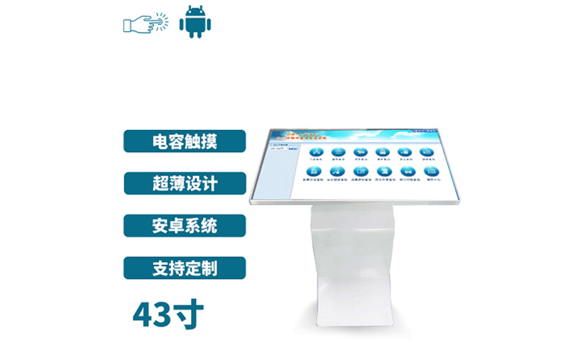 深圳中視智能商顯科技有限公司專注于高品質觸摸一體機的研制生產與銷售,旗下產品包含了立式、臥式以及壁掛式三種外觀設計,本款產品的顯示尺寸為43寸,采用臥式外觀設計,使用了電容觸控屏作為觸摸單元,顯示尺寸為43寸,搭載安卓操控系統,支持人臉識別功能,操作簡便反應迅速,在查詢領域廣受用戶好評,廠家直銷,品質保證。