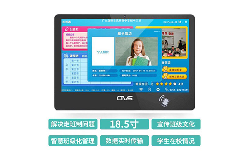 深圳CTVS中視智能商顯科技有限公司是一家專注于中高端智慧校園電子班牌研制與生產的專業廠家,此款電子班牌搭載強大的安卓操控系統,支持遠程數據傳輸,顯示尺寸為18.5寸,支持高清,中視智能在電子班牌的研制方面擁有多年的經驗,在品質與價格方面擁有顯著的優勢。