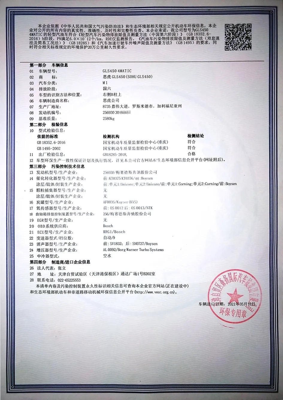 今日:全國首批獲得國六環(huán)保信息公開車型——奔馳GLS450在天津港順利通關(guān),正式投入市場銷售!本批車輛由天津平行進(jìn)口汽車試點(diǎn)平臺(tái)企業(yè)天津自貿(mào)區(qū)森揚(yáng)國際汽車城集團(tuán)有限公司完成,并且已全部配備了三包責(zé)任險(xiǎn),讓消費(fèi)者售后無憂。